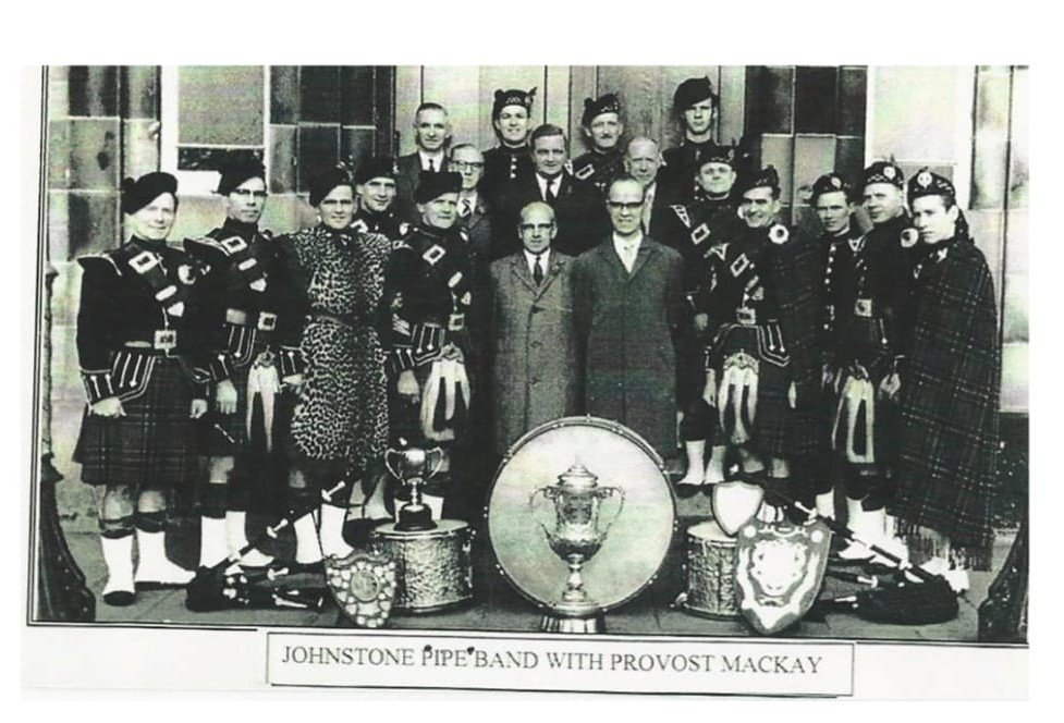 Johnstone Pipe Band was established in 1943 by James Mackay, a former Provost of Johnstone Burgh. In honour of its founder, the band proudly wears the Blue Mackay tartan. Like many pipe bands formed during the Second World War, its original role was to support the local Home Guard by providing music for parades and community events throughout the town.